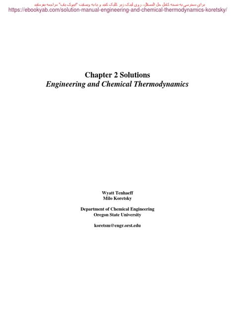 Title: - Koretsky 2nd Edition Thermodynamics Solutions Manual