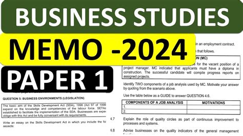 Title: - Business Studies Exampler Memo
