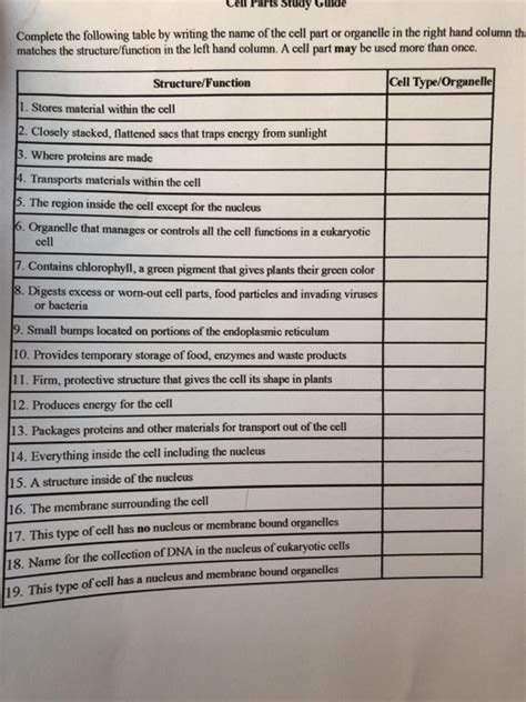 Title: - Cell Parts Study Guide Answers