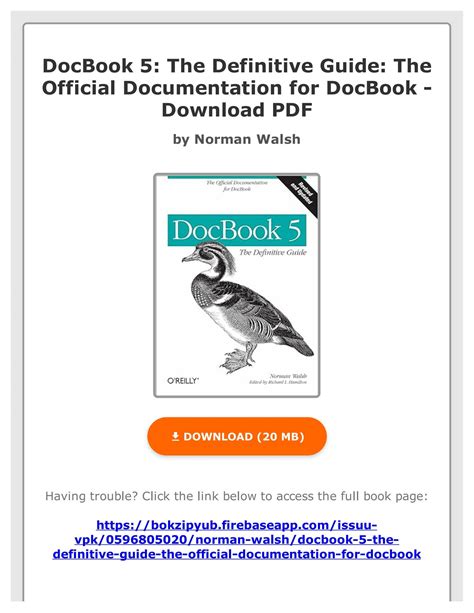 Needless to say people would like to read through intriguing Docbook 5 The Definitive Guide Author Norman Walsh Jun textbooks, considering that men and women want to find out and become entertained at the same time. So if you are a book lover therefore you are trying to find some approaches to locate the most appealing e book to read through future time, Here are a few tricks for you:
