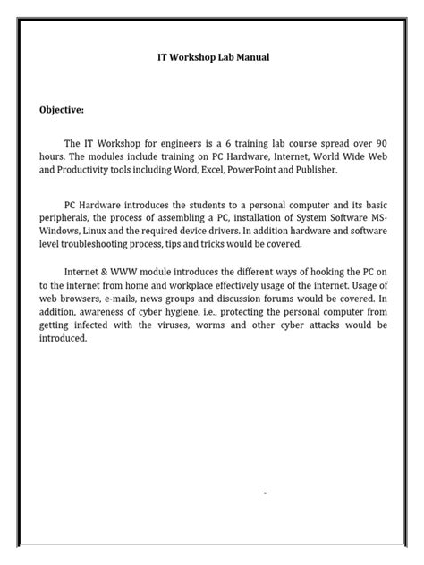 Title: - It Workshop Lab Manual Free