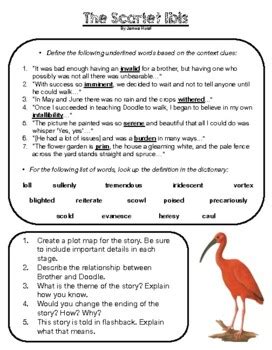 Title: - Scarlet Ibis Study Guide Questions