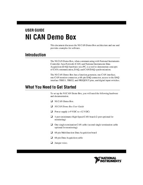 Title: - User Guide Ni Can Demo Box National Instruments