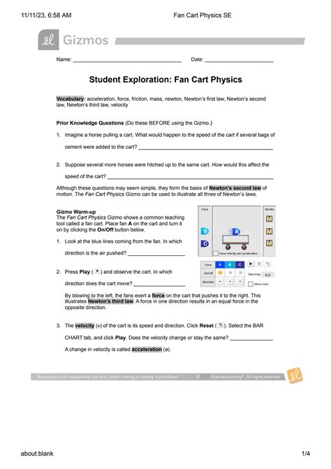 Title: - Fan Cart Physics Quiz Answers